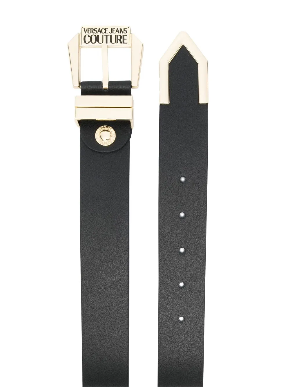 Nero, pelle di vitello, chiusura con fibbia color oro, logo inciso, fori per fibbia e design regolabile.